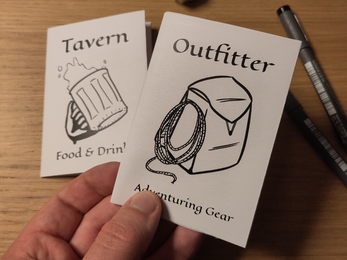 Handouts are amazing. I’m always looking for ways to place physical objects in my players’ hands. It engages them more than my words do. This project tries to improve the ease of running shopping moments utilizing micro zine handouts.